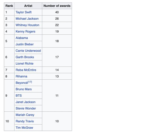 역대 ama 역사상 최다 수상 공동 9등이고,
