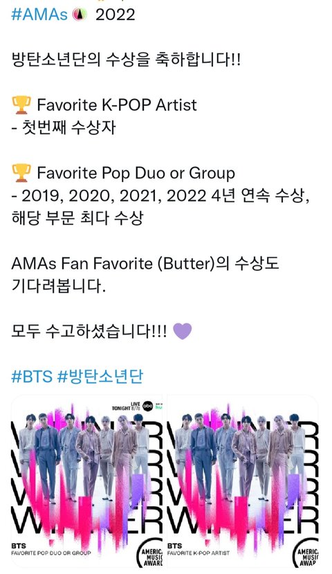 오늘 ama에서 팝듀오, 케이팝 상 등 2관왕을 거두면서