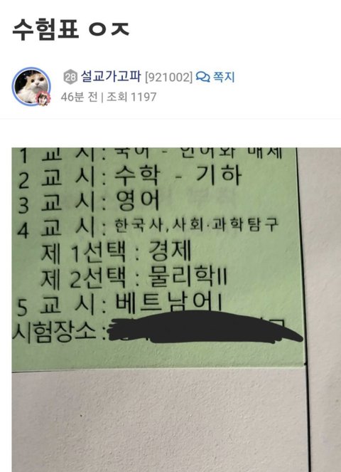 그리고 수능은 다르다 진짜로........그냥 내 점수를 떨구려고 악바리 쓴 시험같아... 재수생각중인 애들아 내가봤을 땐 기숙재종이 베스튼데 이건 돈이 너무많이들고, 못해도 그냥 통학재종이라도 가셈 +연애 절대하지마절대절대