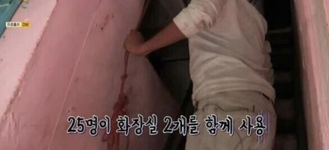 맨바닥에서 25명과 공동 잠자리 + 공동 화장실 사용