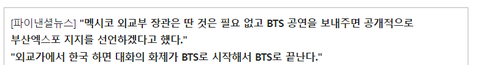 외교라는게 원래 말 한마디에 나라가 좌우되기 쉬워서 말도 엄청 골라서 하는 분야인데 외교계에서 한국하면 우호적으로 꺼낼 수 있는 주제로 바로 BTS가 나온다는거지ㅋㅋ 그거면 어느나라건 공감하고 대화할 수 있다는거니까 대단한거임