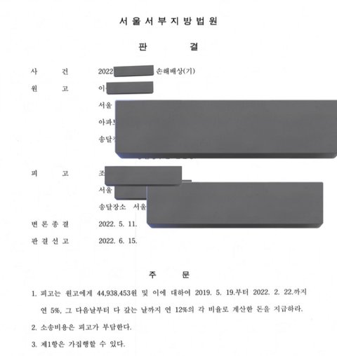 저는 조**님이 저지른 '사기 범죄 피해액 44,938,453원+법정이자+위자료300만원'맡긴 취미 물품 반환을 무시한 채 팔아버려 '횡령''사기''횡령' 2번의 범죄 피해자 이** 입니다.