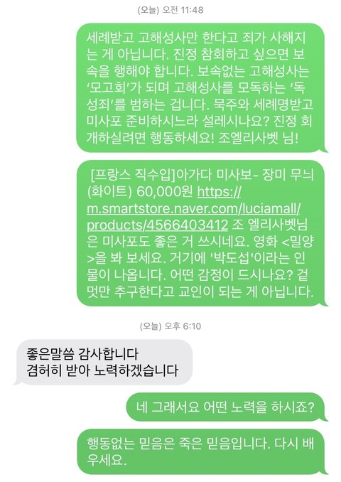 추가) 2022.11.22. 18.10.에 조**님에게 받은 문자입니다.하느님은 이런 교인도 죄를 사하시나요?