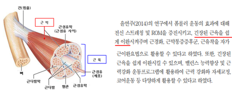 근막…근육…좀 햇갈릴 수 있는데 간단하게 사진으로 설명해보면..ㅎㅎㅎ 근막은 근육을 덮고있는 얇은 막이며 근육은 근막보다 안쪽에 위치해 있기 때문에 근육을 자극하기 위해서는 좀더 깊숙한 자극을 줄 수 있는 폼롤러가 필요해요! 위에서 설명드린 논문을 다시 가지고와서 말씀드리면…!