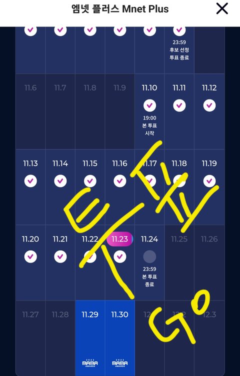 오늘 내일 마마 투표 열투해줘 저 등수에서 내려오지 않게