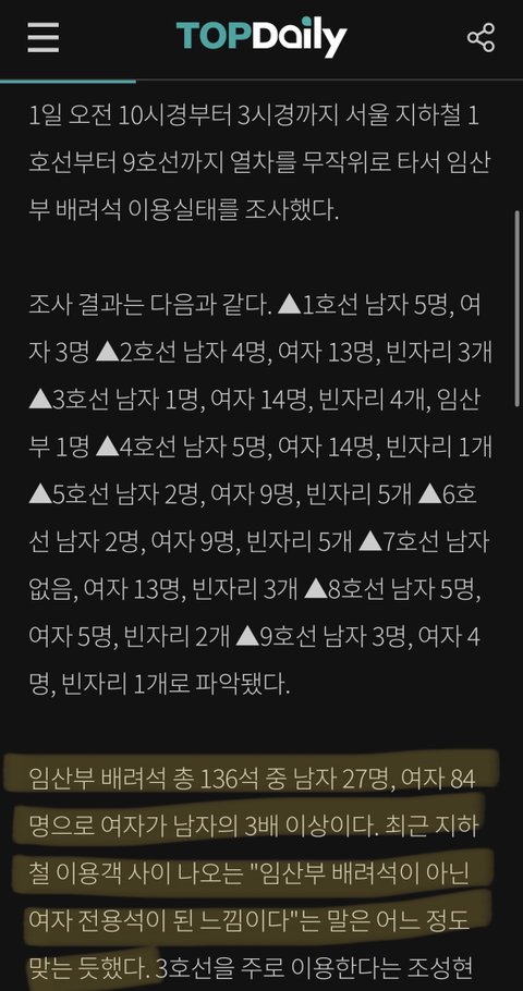 임신 해보니 남자들은 오히려 일반석도 양보해주고, 아줌마들이 밀치고 앉아서 못본척 하더라