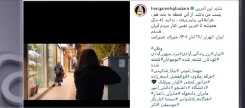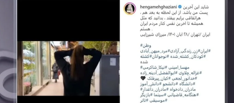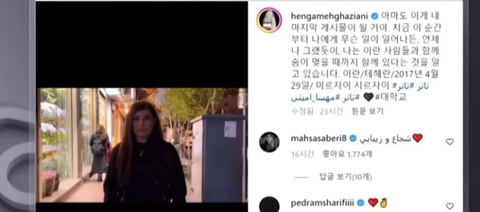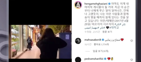 이란의 유명 여배우가 히잡 착용을 거부하는 영상을 SNS에 올리고