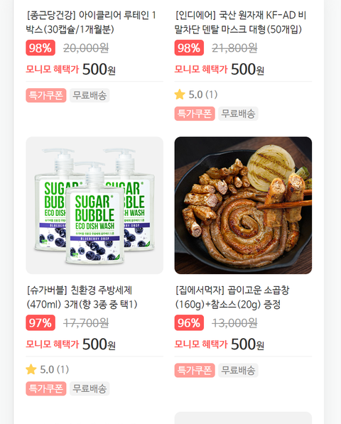 그외 다른 500원딜 상품들도 꽤 있고 다양해서 한번 보시면 좋을 거 같아서 공유드려요~