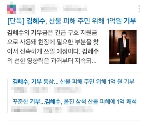 이 외에도 꾸준히 재난 피해 현장에도 관심 갖고 기부함