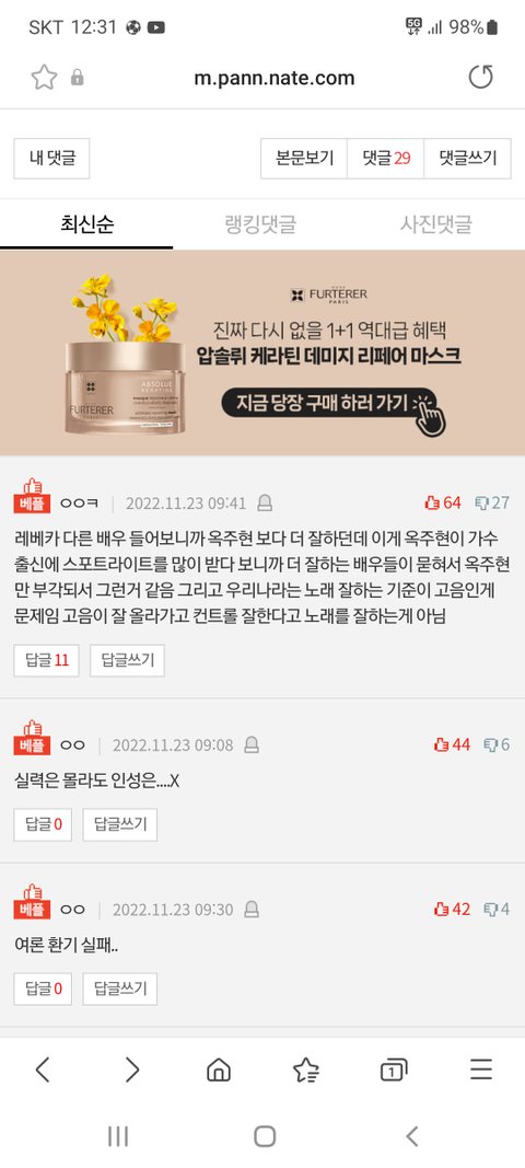 옥주현 글 베플에서 노래실력, 고음 얘기 하길래