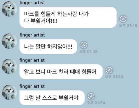왜 그 마크 파뿌리 셀카 버블에 올리기 전에 자기한테 보여줬는데 뭔 반응해야 할지 몰라서 우리 애기 하고 싶은 거 다 해~라고 했는데 그 셀카 보고 요즘 스트레스 많이 받았나? 했대 ㅋㅋㅋㅋ 그리고 저거 보냄