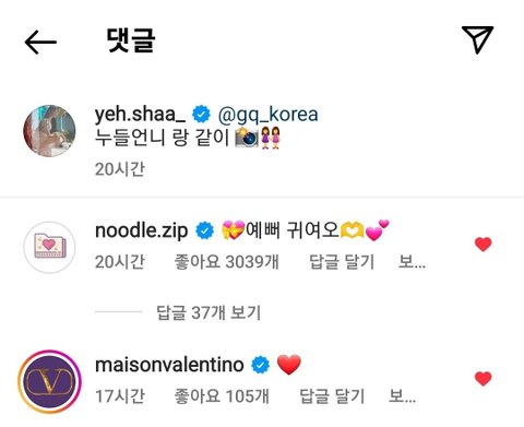 아이들 슈화 인스타에 발렌티노 계정이 댓글담