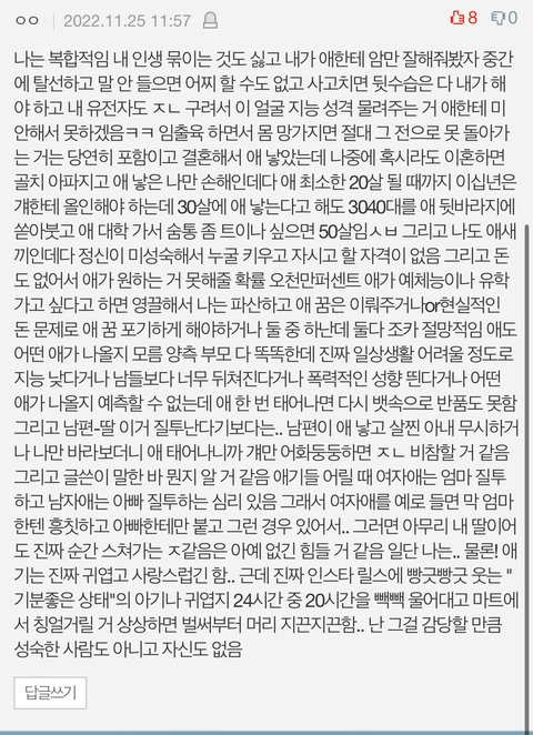 그리고 몇몇 댓글들 나 아직 중3이고 나중에 커서 애 낳을 생각 1도 없으니까 안심해도 됨