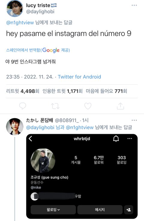 근데 대화가 더웃곀ㅋㅋㅋ 9번선수 인스타넘기랰ㅋㅋㅋ