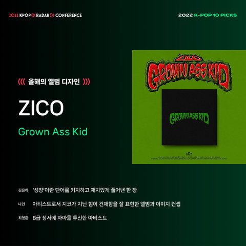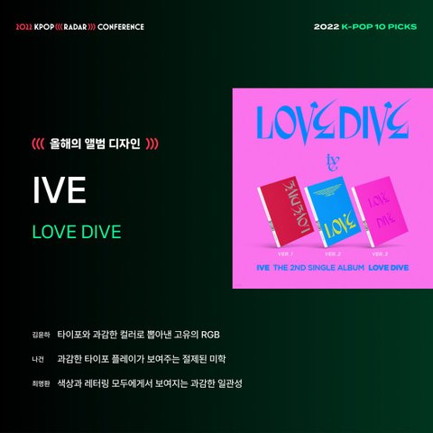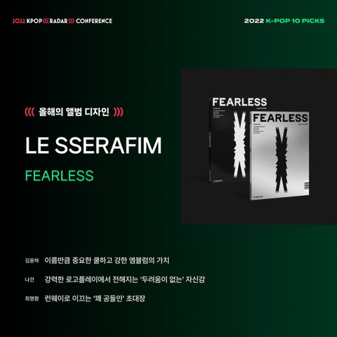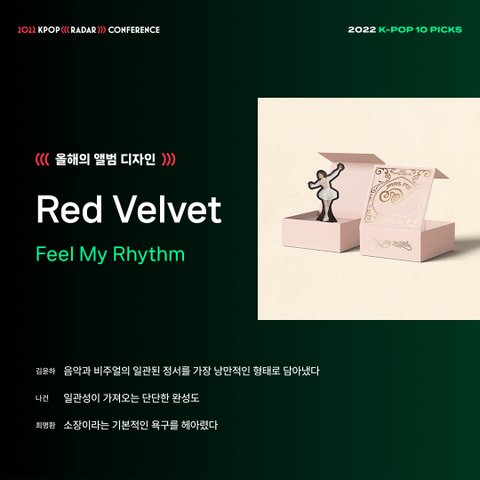 "색깔과 타이포그래피에서 과감함과 절제미가 함께 느껴집니다. 이전 작품들과 함께 보면 그룹 자체의 아이덴티티가 되어가고 있는 듯 합니다."
