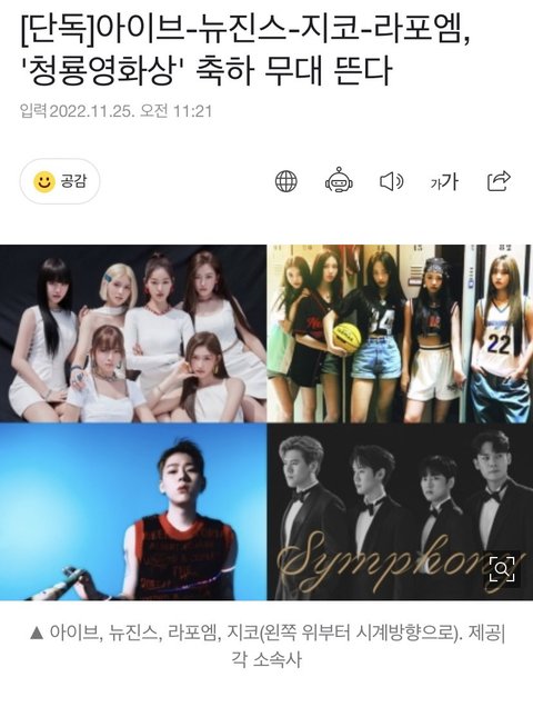 [단독]아이브-뉴진스-지코-라포엠, '청룡영화상' 축하 무대 뜬다