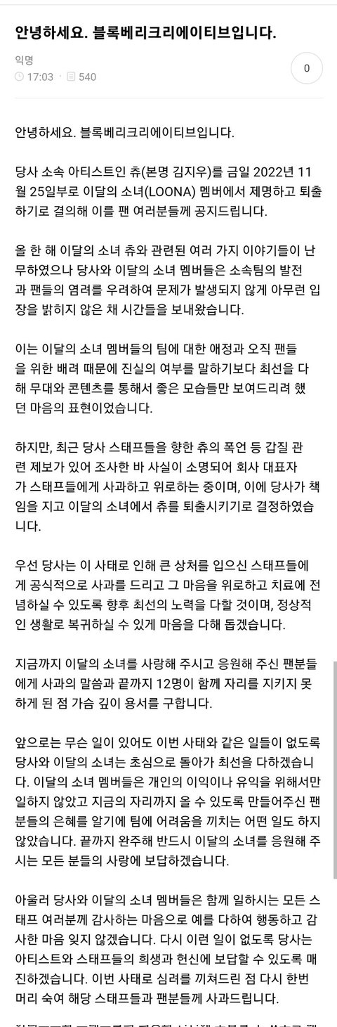 솔직히 이 글 타팬입장에선 그냥 소속사가 츄 마지막까지 괴롭힐 작정으로 쓴 듯한 느낌이라 못믿겠음