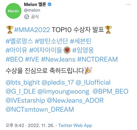 멜론 공식 축하글 떴다