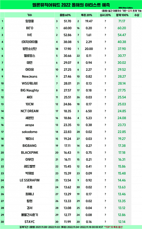 애초에 올해의 앨범상/ 올해의 가수상 / 남자솔로 전부 임영웅이 점수상 유력이였음