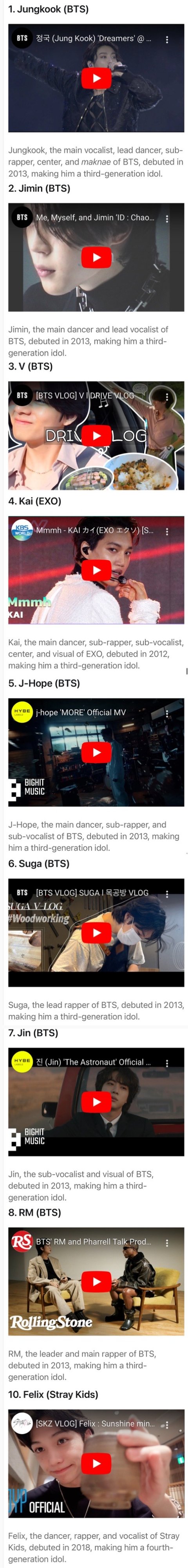 2022 미국 유튜브 서치 가장 많은 남돌 랭킹