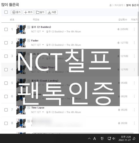 지금 폰 멀리 놔둬서 가져오기 귀찮다 지니 스밍내역으로 인증해여