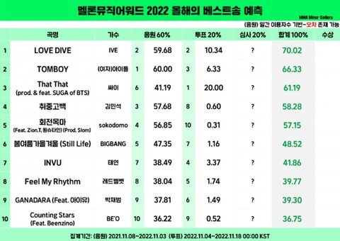 성적으로 태연이 못받는게 말이 안된다고 걍 멜론이 태연 거르고 엔드림이나 세븐틴 준거임ㅇㅇ애초에 스밍량 차이가 넘사여서 다운으로도 커버가 불가능한데 왜 자꾸 다운투표로 뒤집었대