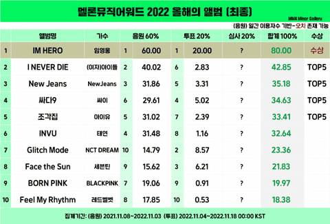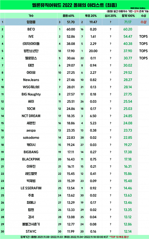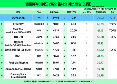이번엔 태연 탑텐 못받은거 말곤 논란 될게 없어 근데 태연은 왜 못받은건지 이해안감