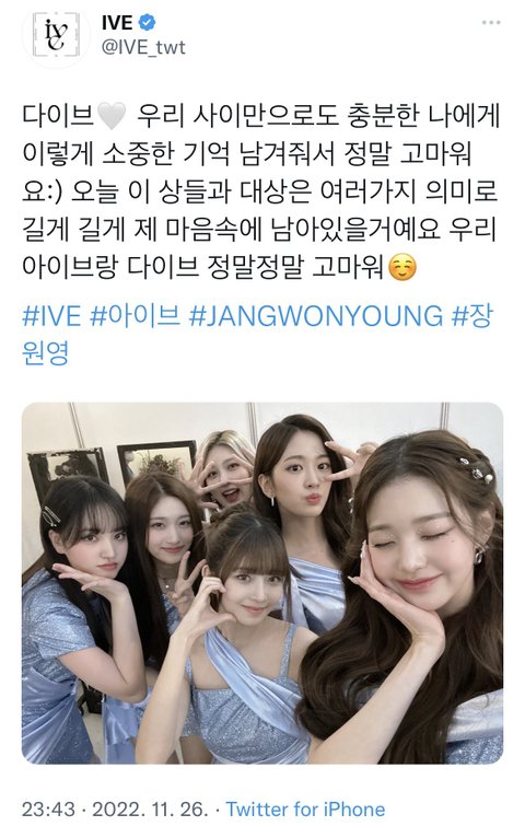 스타쉽 타그룹 팬이라 내리사랑으로 아이브 간잽하는데 원영양 팬들한테 참 잘해... 진짜 인재야