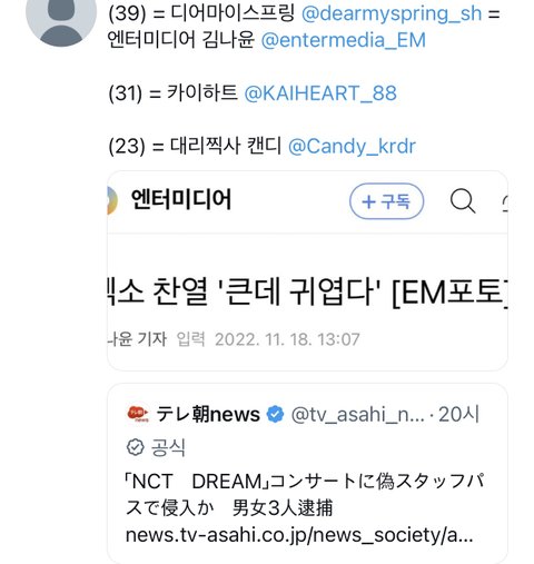 알고보니 세훈 홈마, 카이 일본홈마, 대리찍사 였음