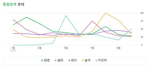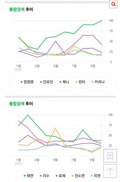 2022년 걸그룹 10대, 20대 네이버 검색량 TOP10