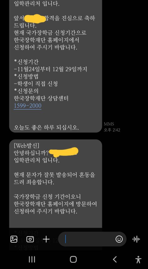 ㅇㄴ근데 잘못 보냈다 하고 국가 장학금 얘기는 왜 하는거지