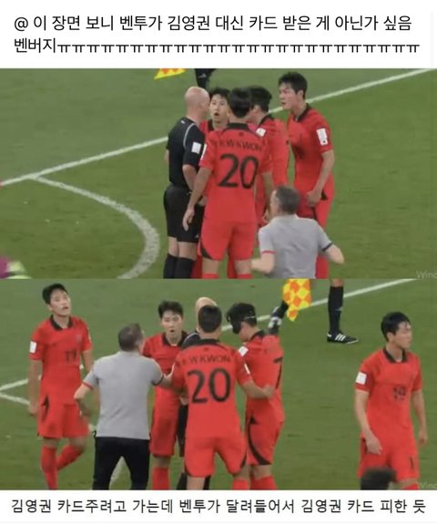 +) 레드카드 받아서 다음경기 포르투갈 전에서는 벤투감독 관중석에 앉아야되나봄..