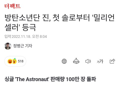 오 여기 추천 누르는것봐 방탄 인기 사그라드렸다고 생각하시는 분들아 그냥 니들 바램 아님? 방탄 인기가 사그라드려서 방탄 전체 기록 솔로 기록 세우고 하냐.. ㅋㅋ 투표도 남돌 중에 1위이시던데