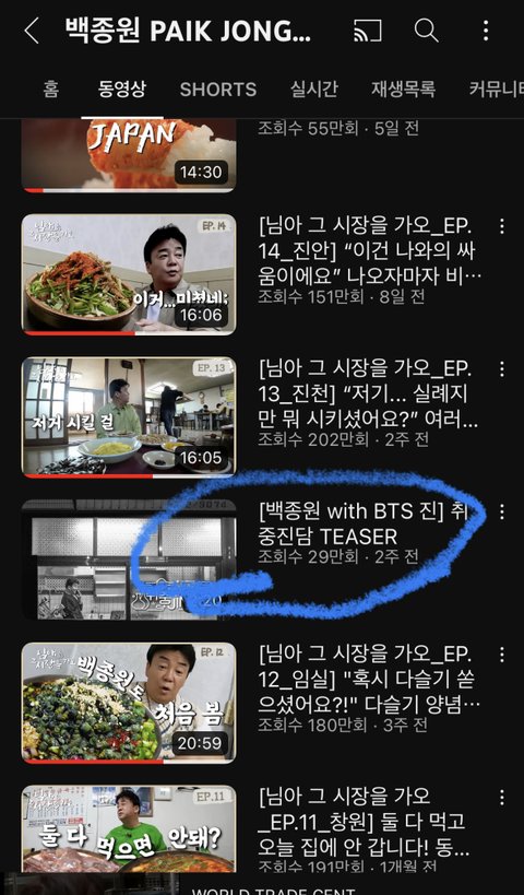 2222내가 이거 느낀게 백종원님 유튜브 진 영상보다 다른 컨텐츠 조회수들이 배는 높더라 티저영상이여도 방탄인데