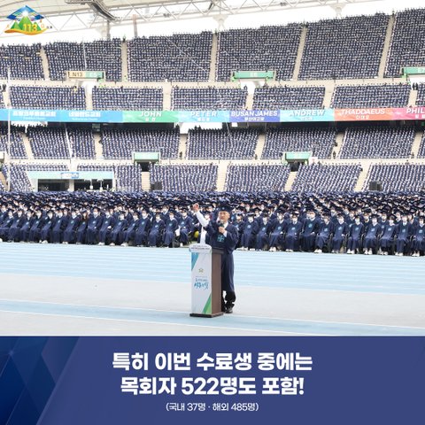 신천지예수교회는 20일 대구 수성구 대구스타디움에서 총 10만6186명의 수료생이 참석한 가운데 시온기독교선교센터 113기 수료식을 열었다. 시온기독교선교센터는 신천지예수교회의 무료 성경교육기관을 의미하며 교육을 마친 이번 수료생 중에는 1600명이 넘는 국내외 목회자가 포함됐다.