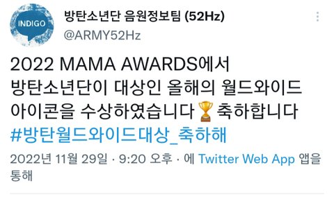 방탄월드와이드아이콘 대상 축하해