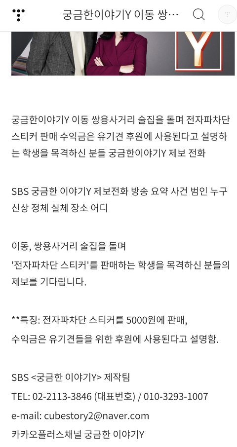6월 달에 궁금한이야기Y 에서 제보 요청 올라왔더라 아직 방송 안한 거 보면 제보가 부족하거나 증거가 부족해서 그런거 아닐까 싶어 혹시라도 당한 적 있는 사람이나 그런 사람들은 제보해주라 널리널리 알려야 돼..
