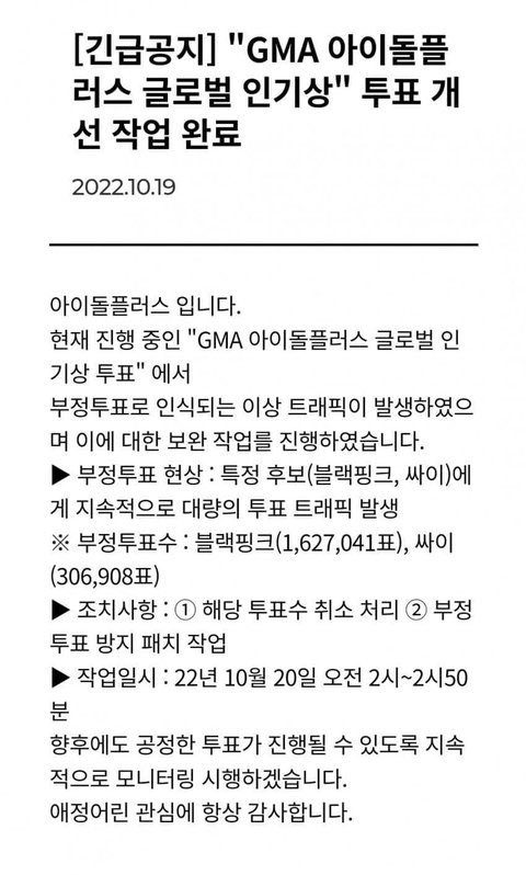 ㅈㄴㄱㄷ 근데 왜 부정투표한 블링크보다 아미가 욕먹음? 누가보면 아미가 매크로 갈긴줄알겠다 그럼 마저 싸우세요