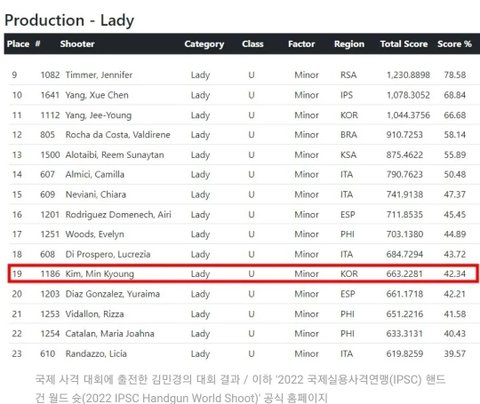 대회 출전한 여성 52명 중 19위 ㄷㄷㄷ
