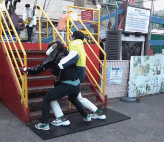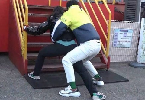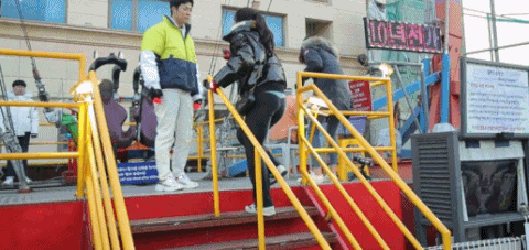 기구에 태우려는 강남과