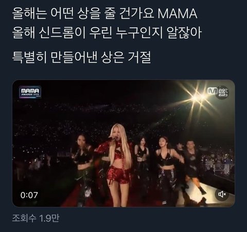 진짜 ㅈㄴ 잘나가는 가수들도 겸손한 그룹 많은데 멜뮤어는 말뭐고 이번에 마마에서도 특별히 만들어낸 상은 거절인가 가사가 이런거 티내는거 너무 싫음