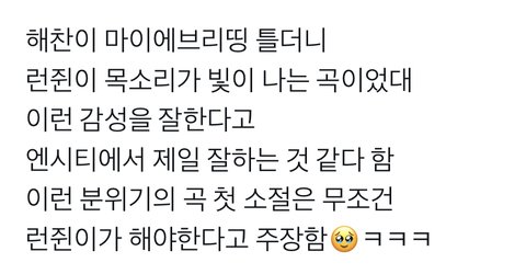 저런 발라드 감성 노래는 런쥔이가 도입 맡으면 딱 듣기 좋은 것 같아