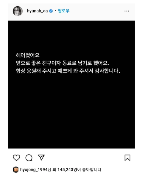 던은 현아 글에 좋아요 누름(?)