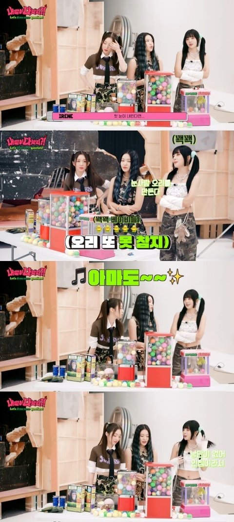 조이는 "눈사람 오리를 만든다"라고 했다. 예리는 "현실적인 거라니까?"라고 했고, 조이는 "캐럴을 듣는다"라고 말했다. 아이린은 "현실적인 거라고?"라며 고민했다. 예리는 "아마도 무언가를 하고 있지 않을까?"라고 했고, 조이는 "아마도?"라고 했다.