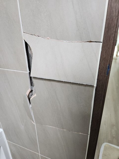 변기쪽 타일 4장 금가서 2차 하자접수해서 관리소 직원분이 오셨습니다 확인차 다른 벽도 두드리셨는데 통통 빈소리가 난다고 아기 키우는 집인데 위험하니 시공업자오면 이것도 말씀드려 갈아라고 하셨어요 그런데 시공업자분께서는 잘 알지도 못하는 사람이 허튼말한다고 새아파트는 팽창 수축을 반복하기 때문에 딱 붙어있는게 오히려 위험하다고 날씨 따뜻해지면 괜찮다고 하시면서 금간 타일만 갈아주고 가셨어요