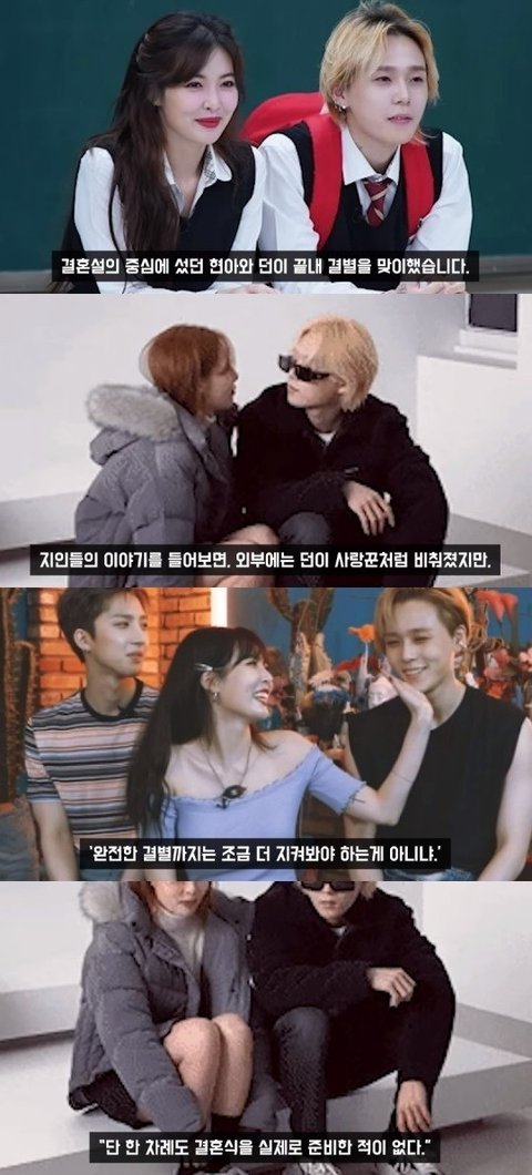 현과 던은 열애 6년만 이별을 발표했다. 현아는 지난 30일 헤어졌다고 밝혔고, 던도 바로 '좋아요'를 누르며 공식적으로 '이별'임을 인정했다.