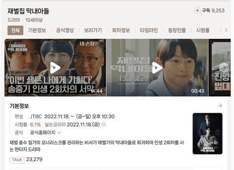 방영중인 재벌집 막내아들은