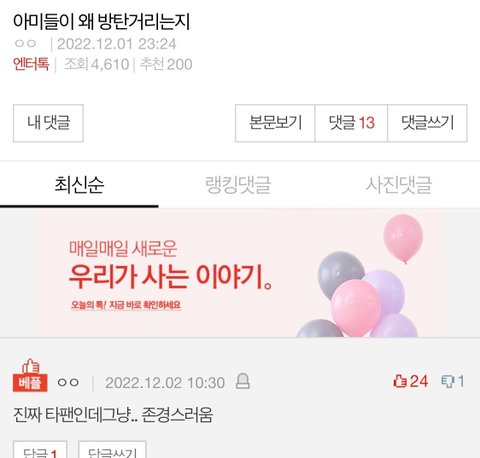 쓰니도 조카 아미고 댓글도 아미인거 조카 티나는데 지들끼리 쇼하네ㅋㅋㅋㅋㅋㅋㅋ방탄 아미줌들 개쪽ㅋㅋㅋㅋㅋㅋ 아미민폐 아미아줌마 아미방탄 정국 뷔 슈가 지민 아미아줌마들ㅋㅋㅋㅋㅋ