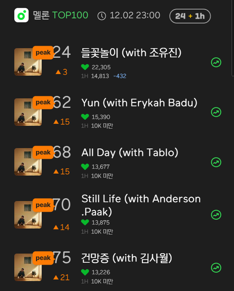 올 피크 지렷다;;;