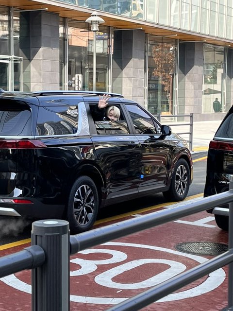 하이브 앞 카페에서 생카하는데 스케줄 갔다가 하이브로 오면서 카페에 있는 팬들한테 인사해주는 강쥐…